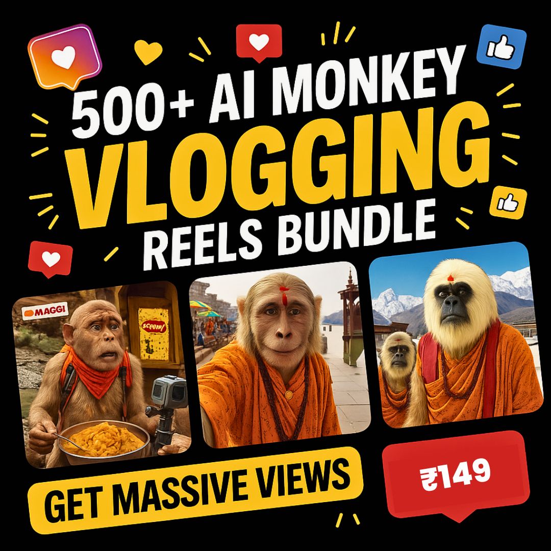 500+ AI Monkey VIRAL Vlogging Reels Bundle